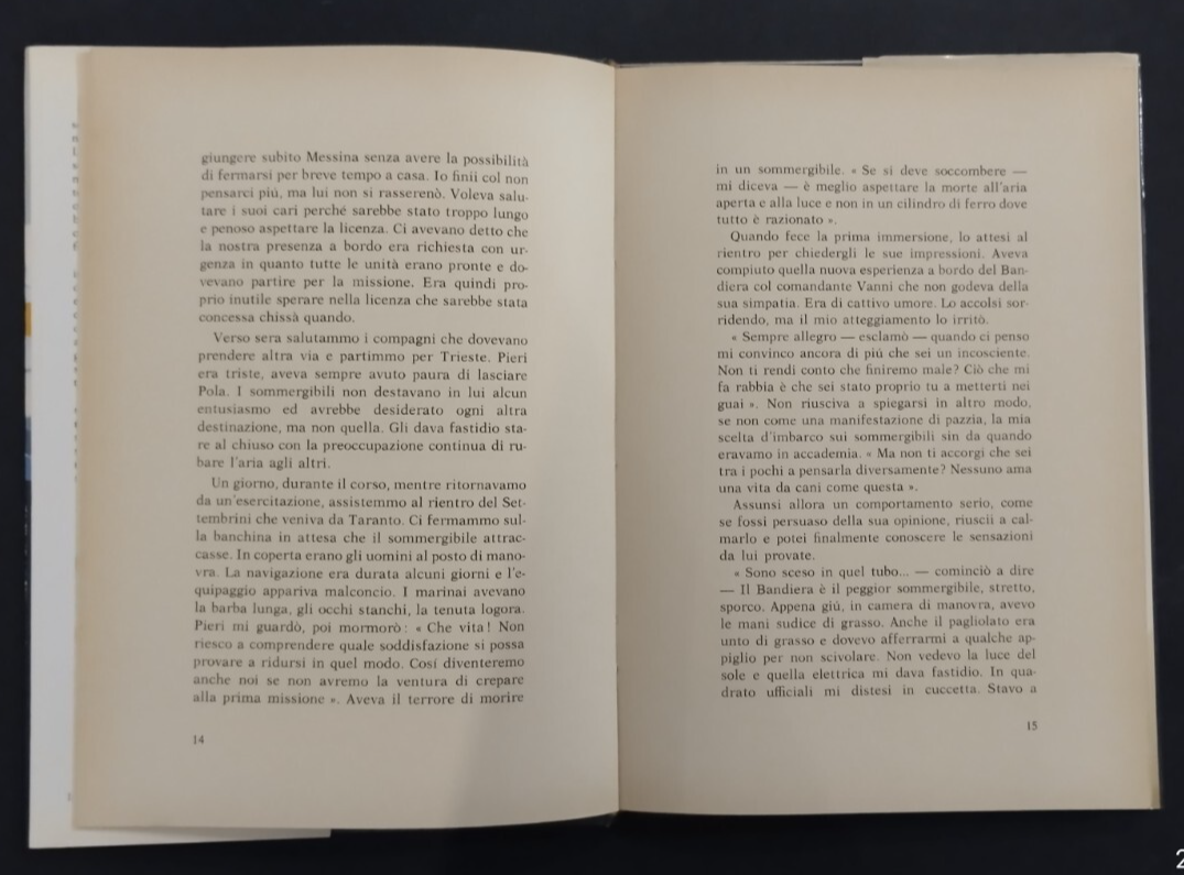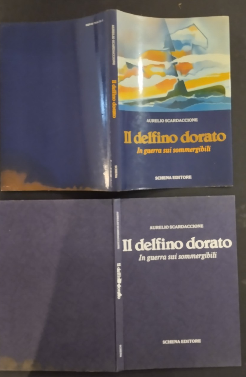 IL DELFINO DORATO IN GUERRA SUI SOMMERGIBILI di Aurelio Scardaccione. Schena Editore, 1988 . 84 pagine, numerose fotografie in bianco e nero fuori testo. Copertina editoriale in cartone rigido e sovraccoperta. Stato di conservazione: molto buono (pagine normalmente ingiallite) Libro usato saggistica militaria guerra marina sottomarini