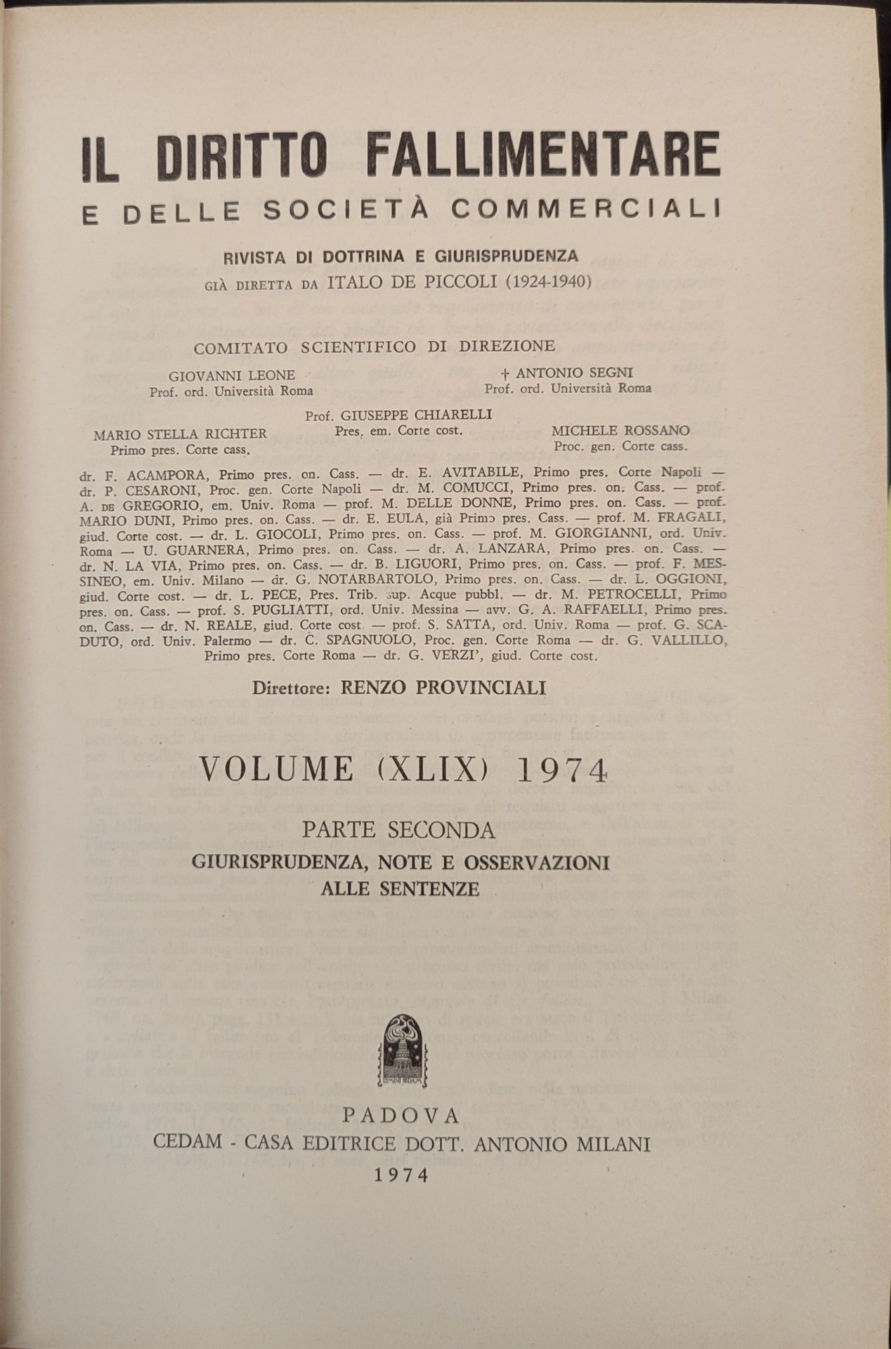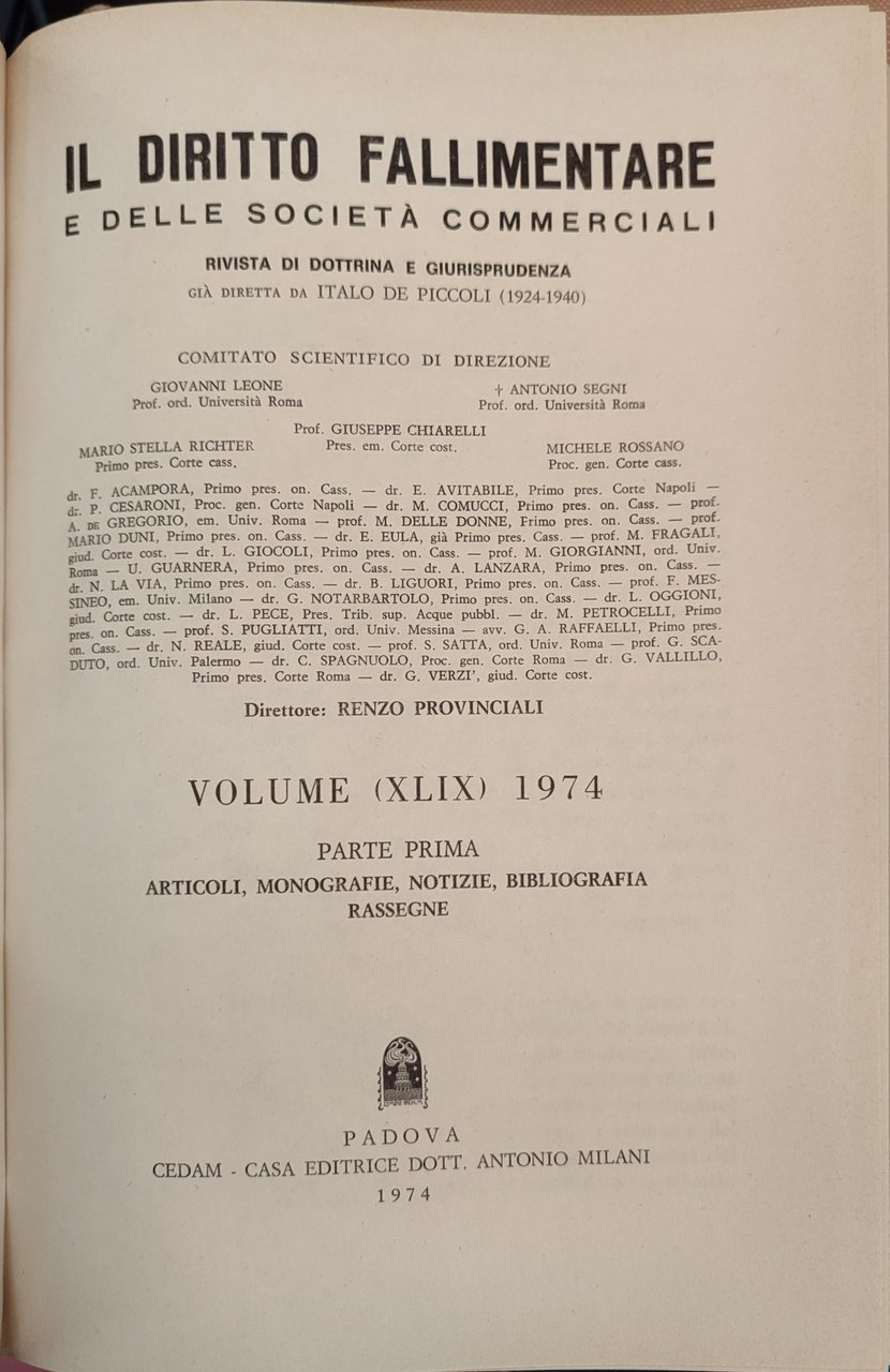 Il diritto fallimentare e delle società commerciali. Rivista di dottrina e giurisprudenza già diretta da Italo De Piccoli. 2 Volumi Volume (XLIX) 1974