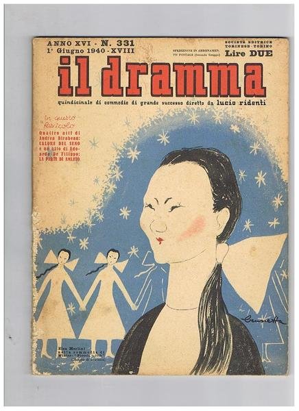 Il dramma, quindicinale di grande interesse. N° 331 giu. 1940. Calore al seno 4 atti di Andrea Birabeau; la parola di Amleto un atto di Edoardo De Filippo; ecc.