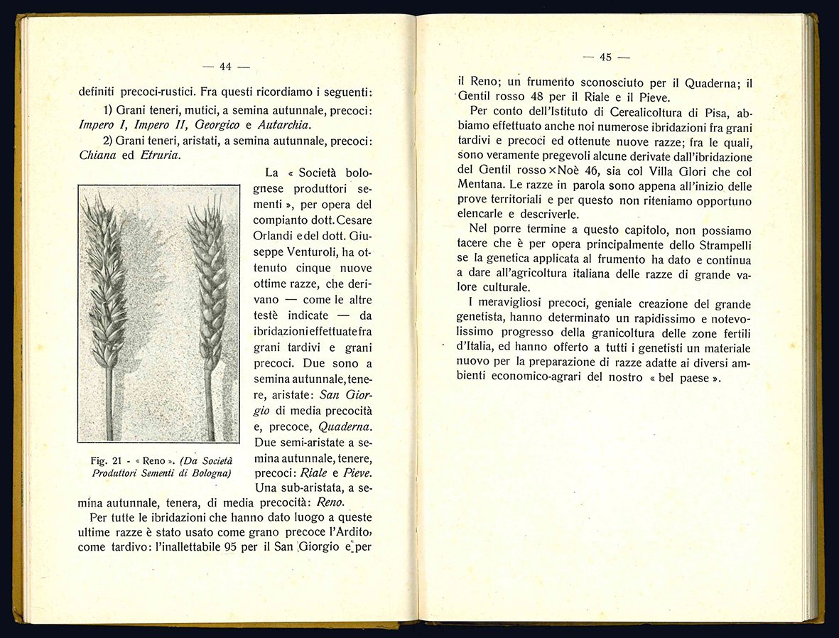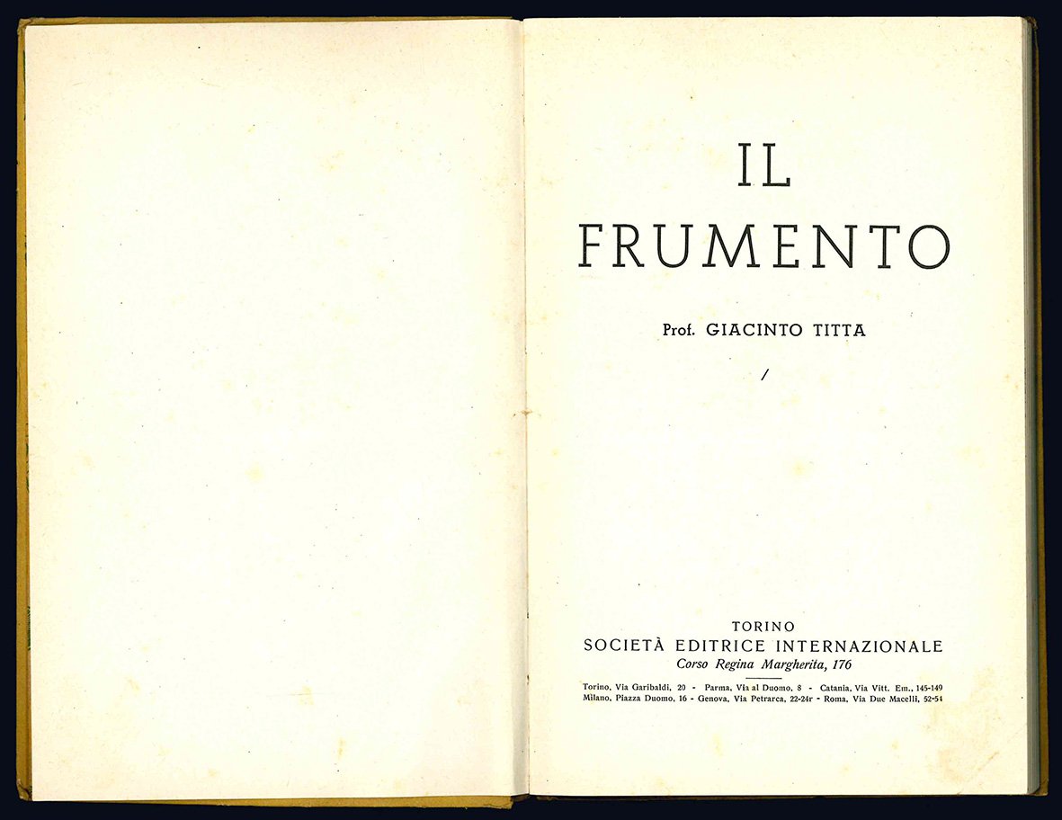In 16mo (mm 187x120); pp. 168, con 26 illustrazioni in bianco e nero nel testo. Lievi fioriture diffuse. Cartonato editoriale, con titolo entro cornice a tema agricolo stampata in rosso e in nero al piatto anteriore. Minime mancanze lungo le cerniere. L'A. fu docente presso l'Istituto di Cerealicoltura di Pisa.