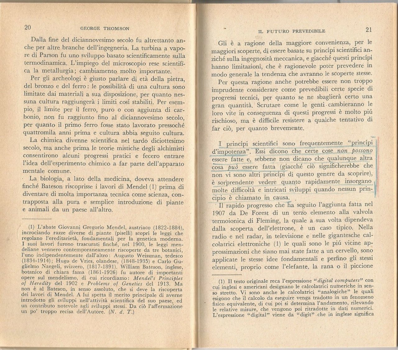IL FUTURO PREVEDIBILE di George Thomson. Mondadori Editore 1957.