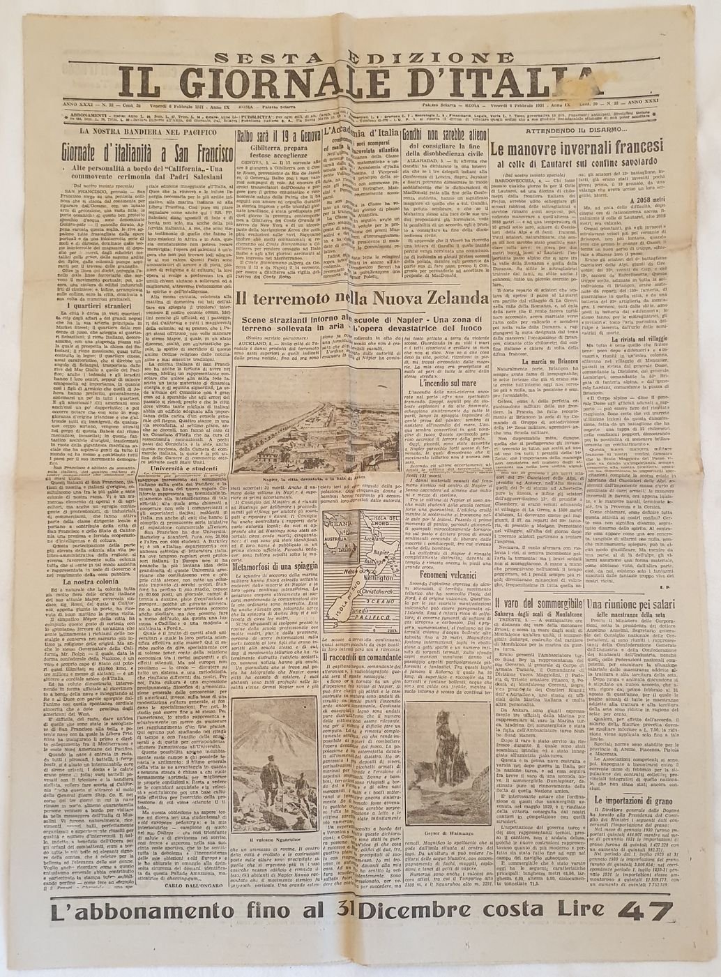 IL GIORNALE D'ITALIA ROMA DOMENICA 6 FEBBRAIO 1931