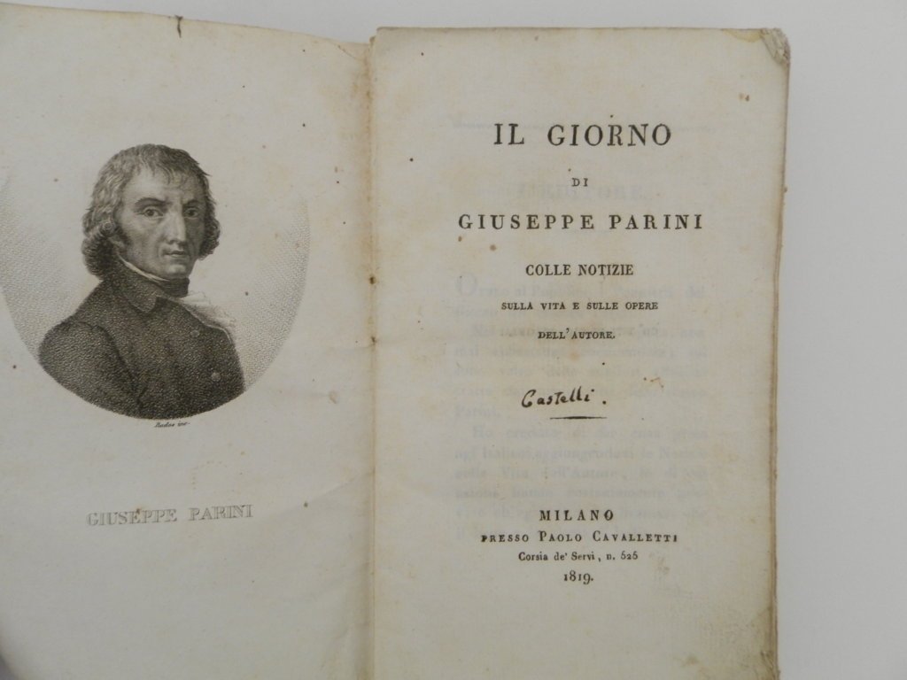 12^, pp. (20), 147, (1), con ritratto del Parini in antiporta, brossura marmorizzata coeva, esemplare con qualche segno del tempo, ma nel complesso in buono stato, internamente candido e fresco, solo a pp. 99 antichi segni d'inchiostro. . *** TUTTI I NOSTRI LIBRI SONO VISIBILI PREVIO CONTATTO MAIL O TELEFONO NELLA NUOVA SEDE DI MILANO: LIBRERIA COSMOPOLIS, VIA JOMMELLI, 22. ***