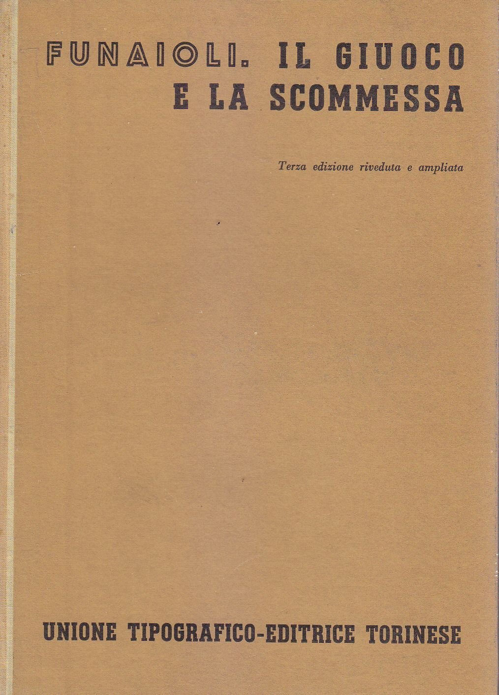 IL GIUOCO E LA SCOMMESSA di Carlo Alberto Funaioli. UTET 1961 collana trattato di diritto civile.