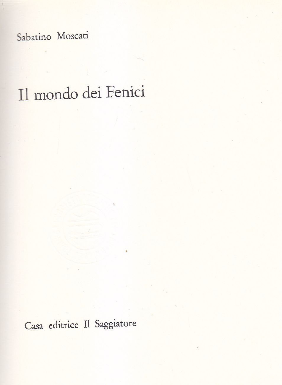 IL MONDO DEI FENICI di Sabatino Moscati 1966 Il Saggiatore portolano libro sui