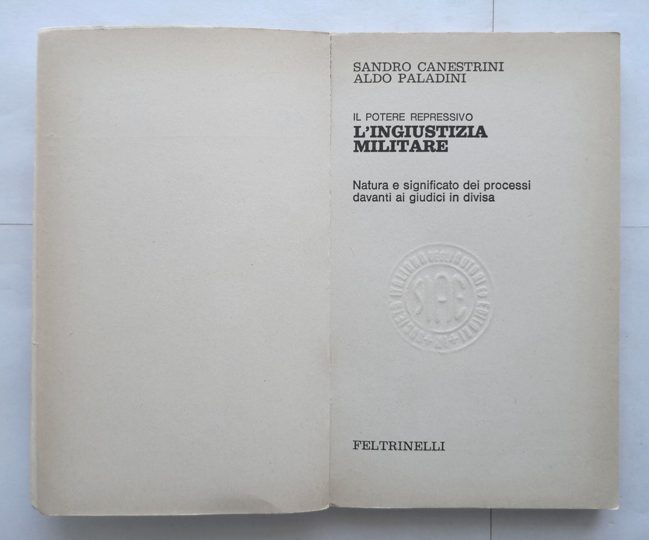 IL POTERE REPRESSIVO L'INGIUSTIZIA MILITARE di Canestrini e Paladini 1973
