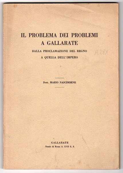 Il problema dei problemi a Gallarate dalla proclamazione del Regno a quella dell'Impero | Livres anciens et modernes | Nascimbene Mario