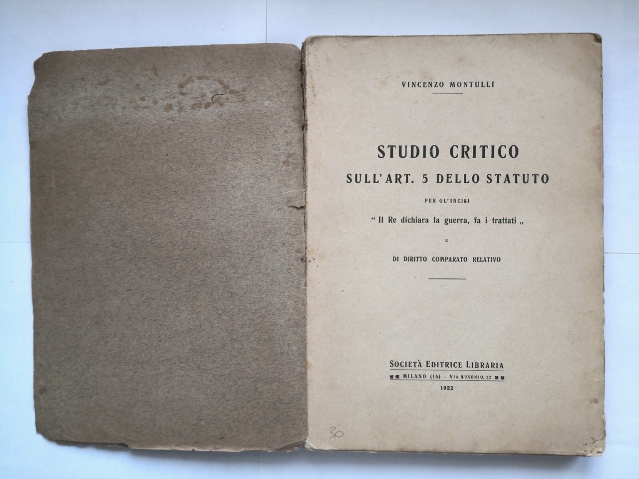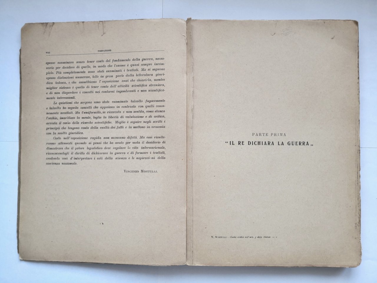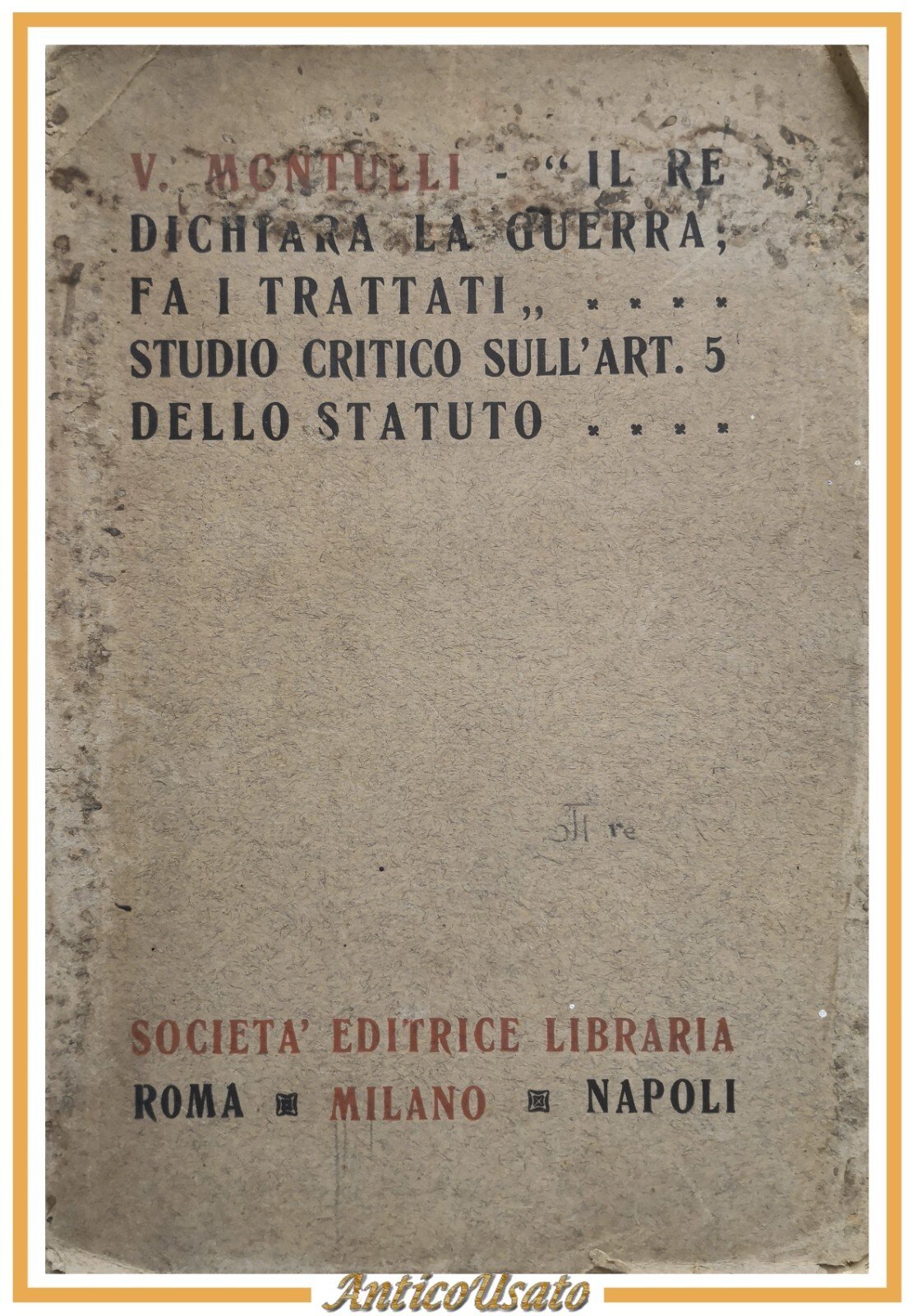 IL RE FA LA GUERRA STUDIO CRITICO SULL'ARTICOLO 5 STATUTO di Montulli 1922 Libro