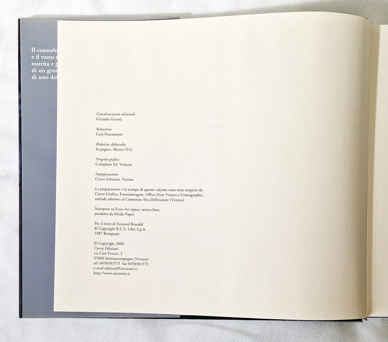Un volume in oblungo, 245x270 mm, leg. editoriale rigida in similpelle nera e sovracoperta in carta patinata illustrata con titoli in bianco; pp. 171. Illustrazioni a colori e in b/n nel testo. Rif.: IT\ICCU\UBO\1259048. [ISBN]: 88-8314-076-1. Cond.: Esemplare in ottime condizioni.