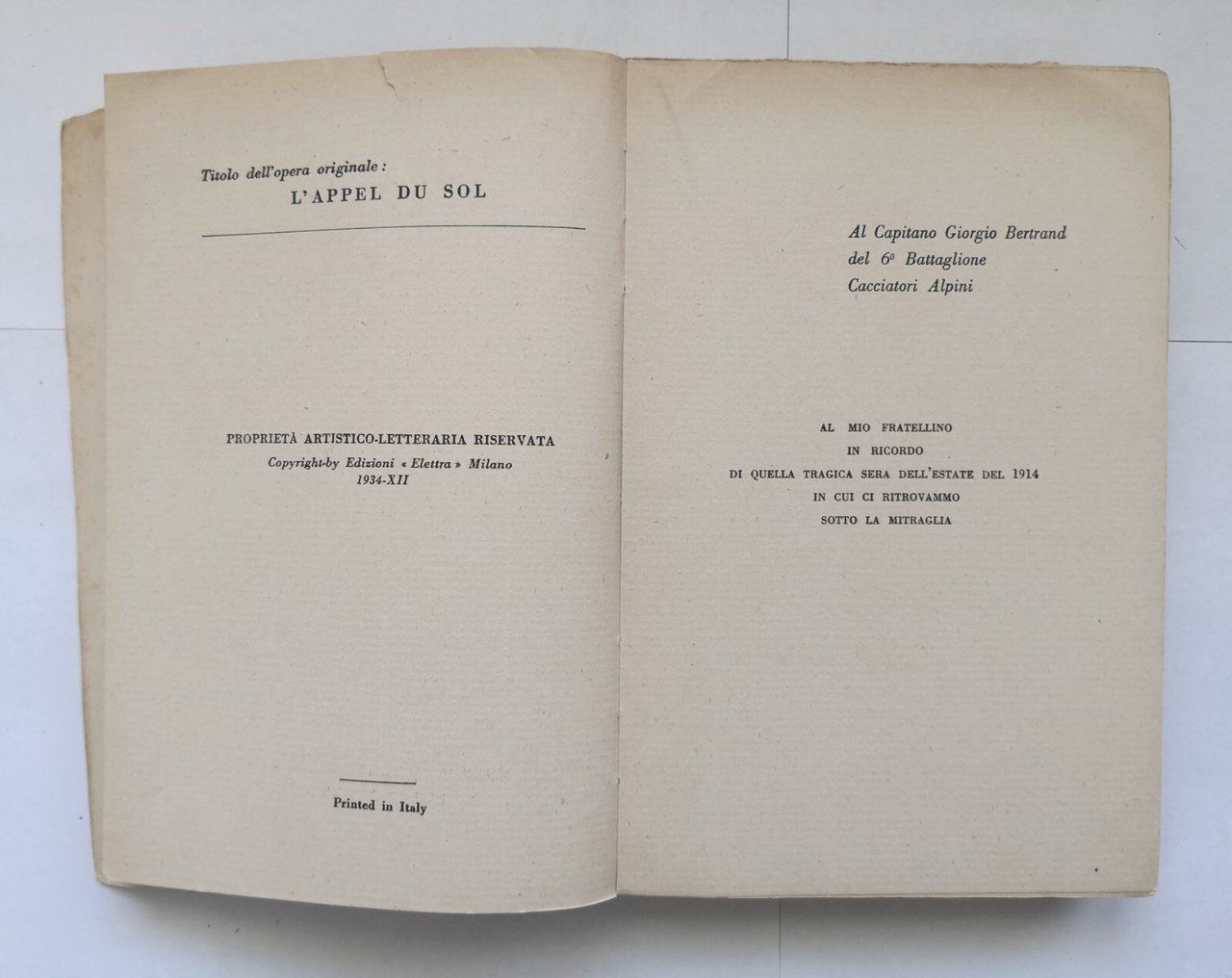 IL RICHIAMO DELLA TERRA di Adrien Bertrand 1934 Elettra romanzo guerra