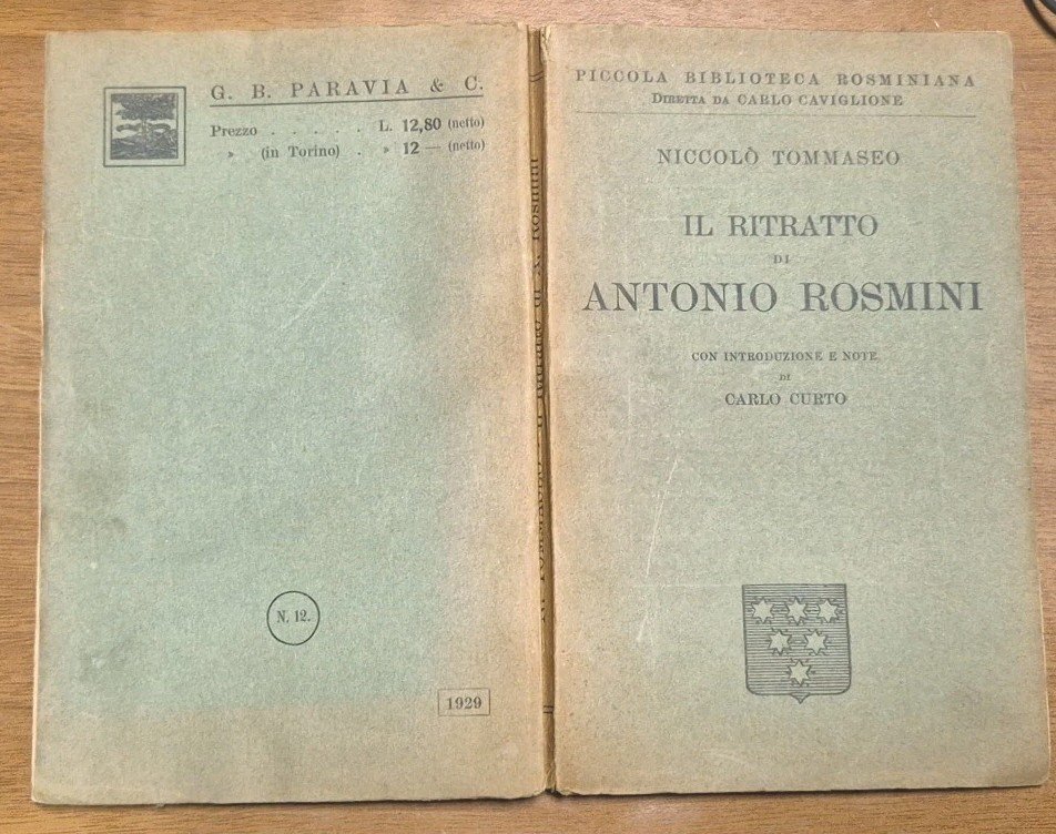 IL RITRATTO DI ANTONIO ROSMINI Niccolò Tommaseo 1929 Paravia Libro biografia