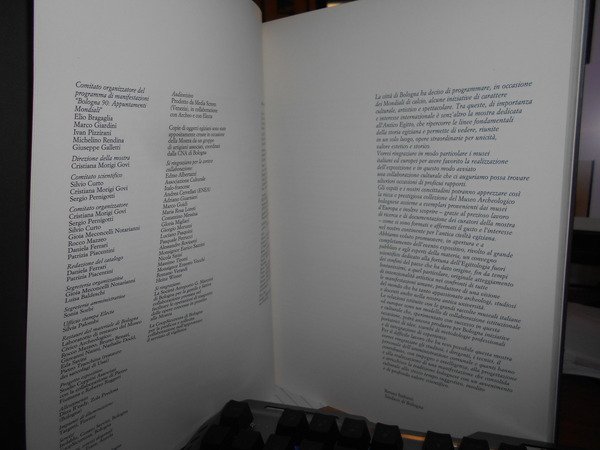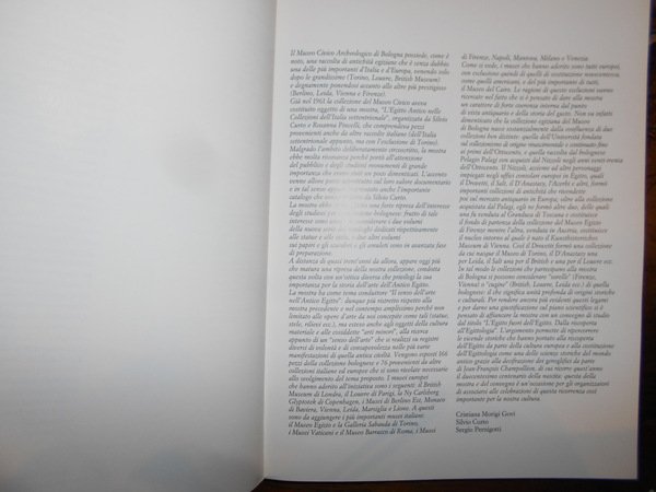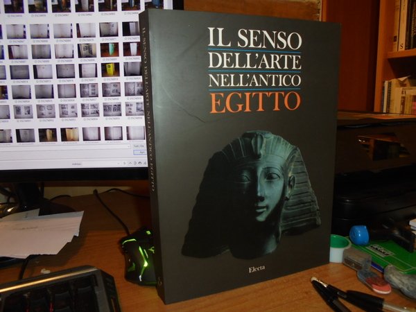 AA. VV. Milano, Electa, 1990. Il senso dell' Arte nell' Antico Egitto. Bologna, Museo Civico Archeologico. In-8° grande, cartoncino ill. a col. con grandi risvolti. 263, (1) pp. con numerose illustrazioni fotografiche anche a piena pagina a colori e in bianco e nero nel testo. Come nuovo. Uff. stanzetta TV. mob. fronte nostro