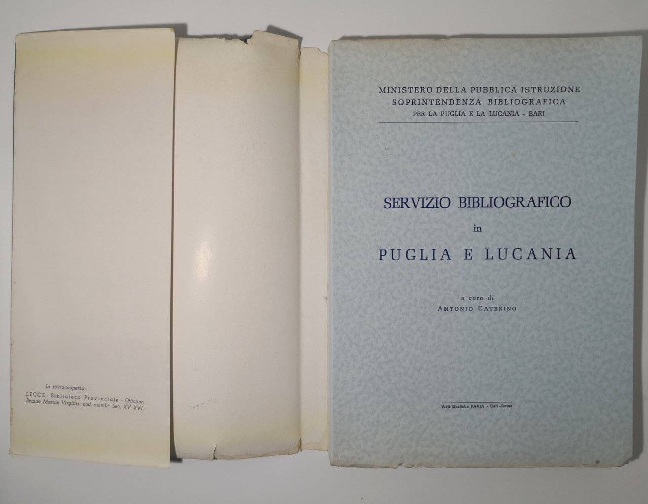 IL SERVIZIO BIBLIOGRAFICO IN PUGLIA E LUCANIA di Antonio Caterino 1960 Libro