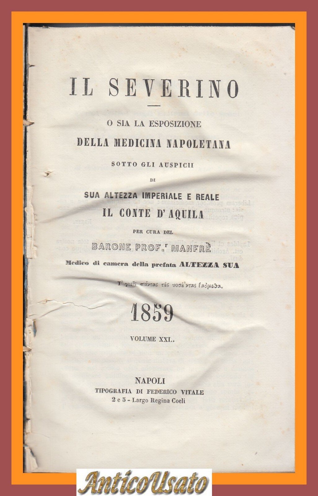 Napoli, tipografia di Federico Vitale, 1859.