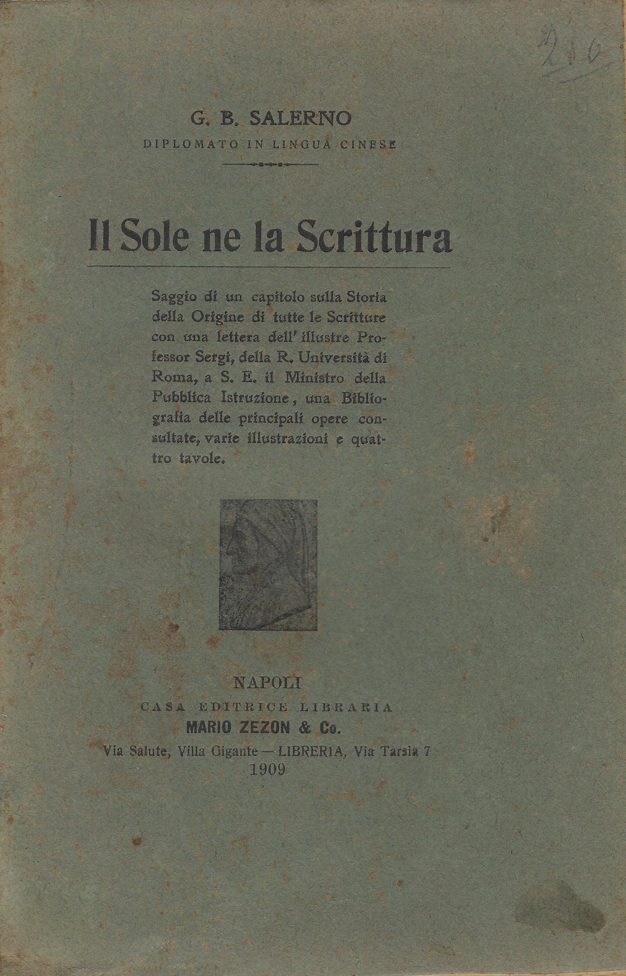 Il sole ne la scrittura : saggio di un capitolo sulla storia della origine di tutte le scritture, con una Lettera dell'illustre professor Giuseppe Sergi dell R. Università di Roma, a s. E. il Ministro della pubblica istruzione, una bibliografia delle principali opere consultate, varie illustrazioni e quattro tavole