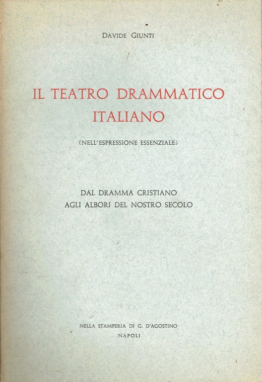 Il teatro drammatico italiano (nell'espressione essenziale) : dal dramma cristiano agli albori del nostro secolo