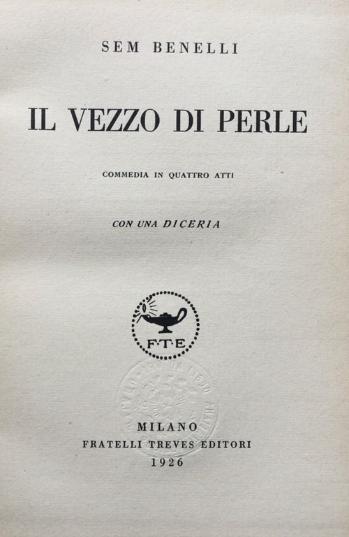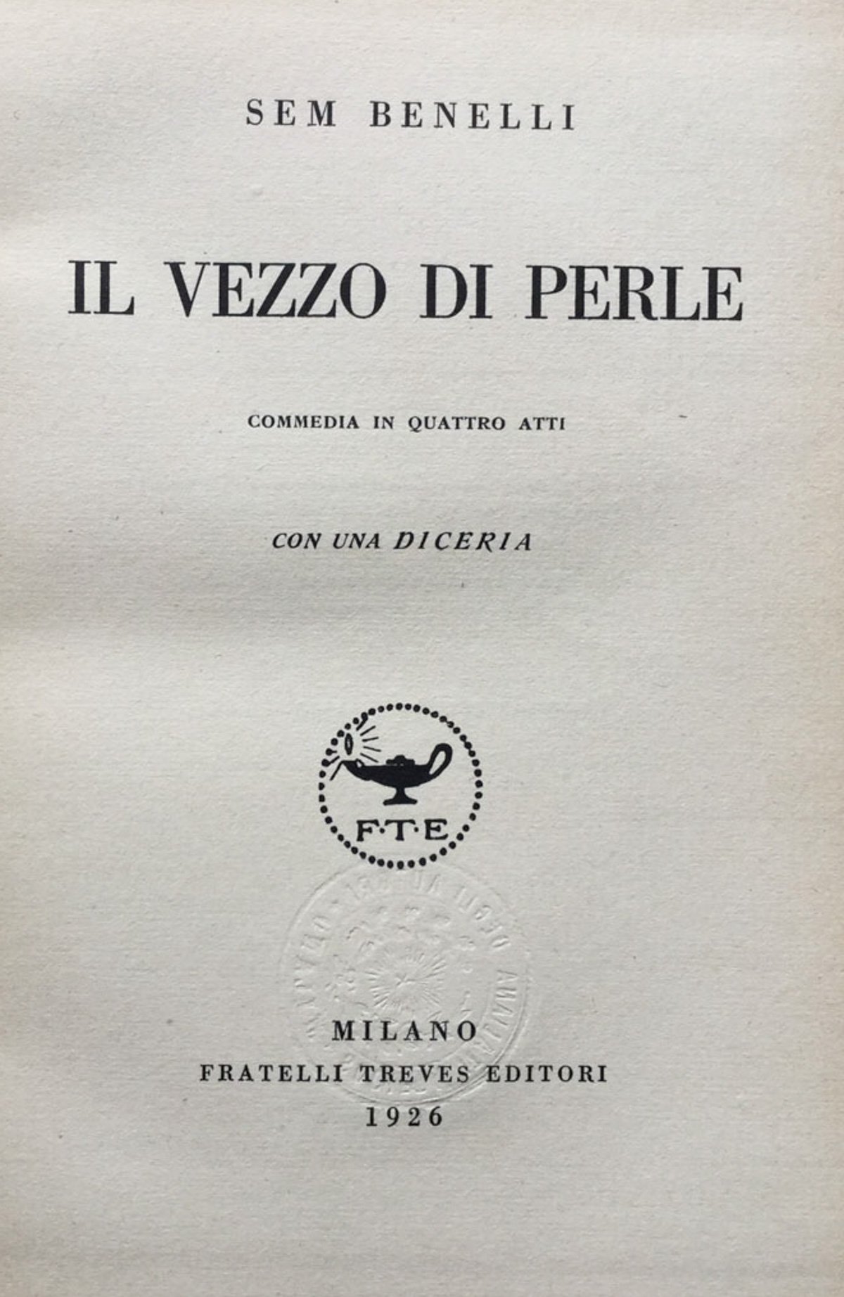 Sem Benelli (Prato, 10 agosto 1877 Zoagli, 18 dicembre 1949) è stato un poeta, scrittore e drammaturgo italiano, autore di testi per il teatro e di sceneggiature per il cinema. Fu anche autore di libretti d'opera. 852 - V In Ottavi (15-23cm ) Ottimo (Fine) Ottimo