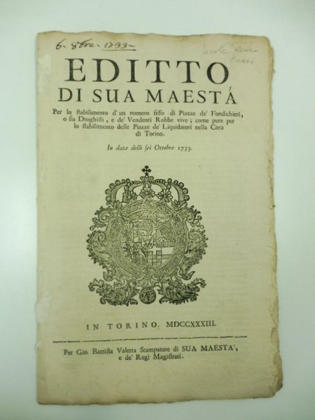 Manifesto cm. 31 x 39. Stemma xil. Inibizione su domanda dell'Universita' a chiunque non abbia superato il prescritto esame di fare lavori attinenti le varie arti da falegname.