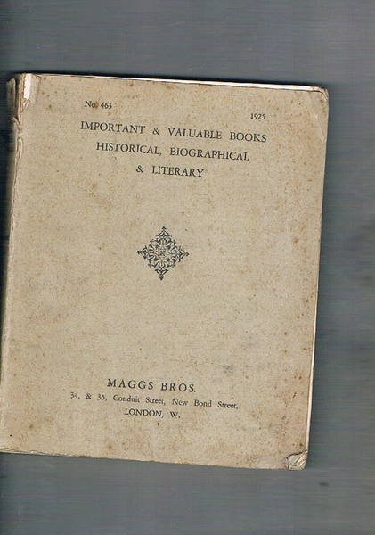 Important & valuble books historical, biographical & literary. Catalogo n° 463 del 1925.