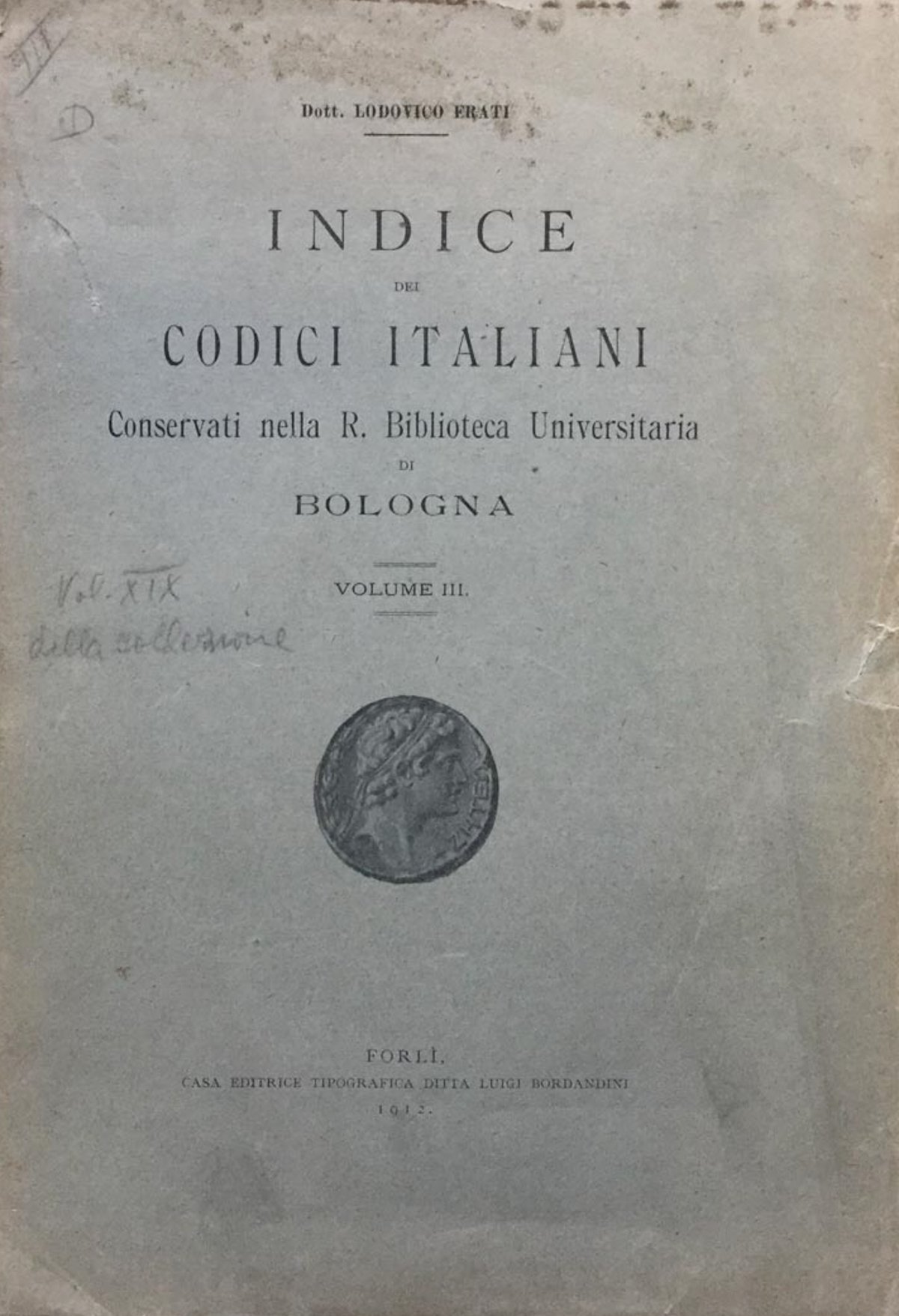 Indice dei codici italiani conservati nella R. Biblioteca Universitaria di Bologna. Volume III