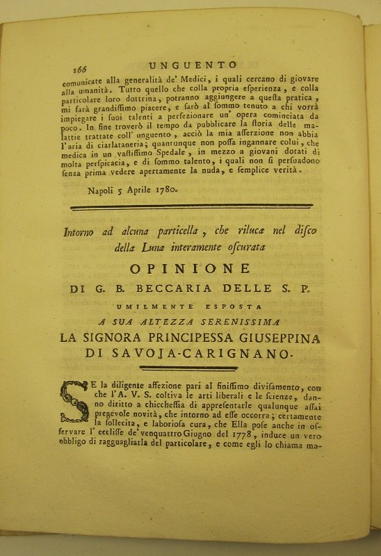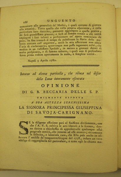 Intorno ad alcuna particella che riluca nel disco della luna interamente oscurata. Opinione di G. B. Beccaria