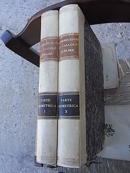 Introduzione al calcolo sublime lezioni dell'anno 1868-1968, parte geometrica in due tomi, con aggiunto al secondo del ristetto di geometria analitica secondo il metodo diretto o cartesiano. lezioni legatue in due volumi completamente manoscritte e con dis. n.t. che è su una soloa colonna per pagina. | Livres anciens et modernes |