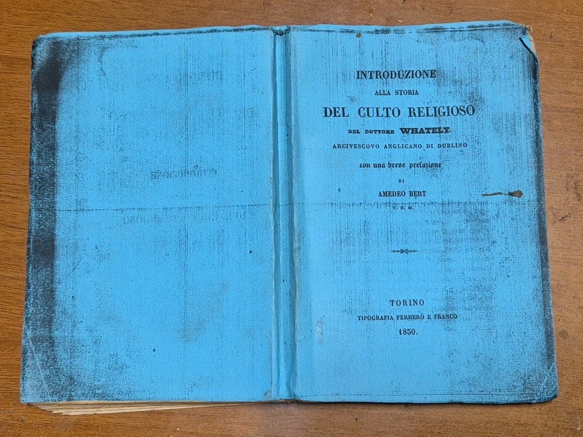 INTRODUZIONE ALLA STORIA DEL CULTO RELIGIOSO di Whately 1850 Ferrero Libro