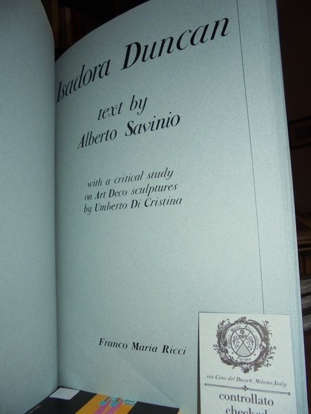 ISADORA DUNCAN. With Art Deco sculptures by Chiparus, Preiss, and others. Milano, Franco Maria Ricci, 1979. In-4° grande (cm. 35 x 23 circa), seta nera e oro con placchetta applicata sul piano anteriore. 183, (2) pp. con numerose bellissime illustrazioni applicate. Esemplare come nuovo a tiratura limitata n° 2103. Neg. mob. nero carc. Spese di spedizione euro 9.