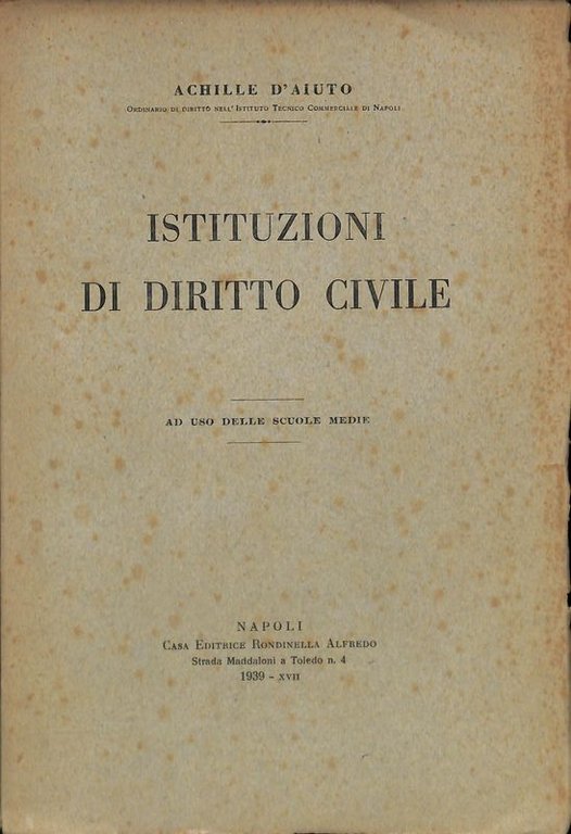 Istituzioni di diritto civile ad uso delle scuole medie | Livres anciens et modernes | D''Aiuto Achille
