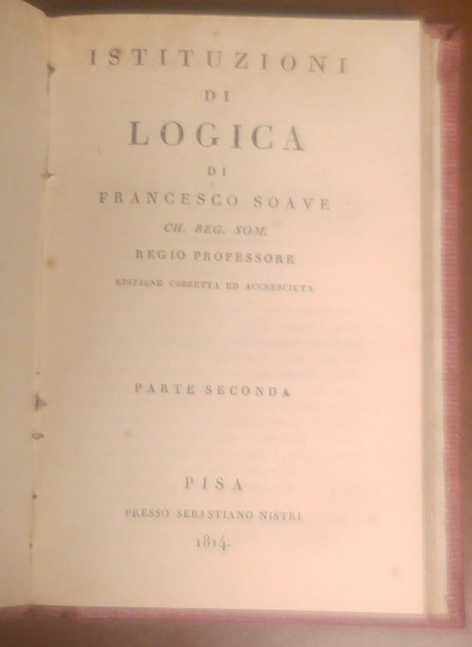 Istituzioni Di Logica Francesco Soave 2 tomi in 1 - 1814 Libro Antico Filosofia