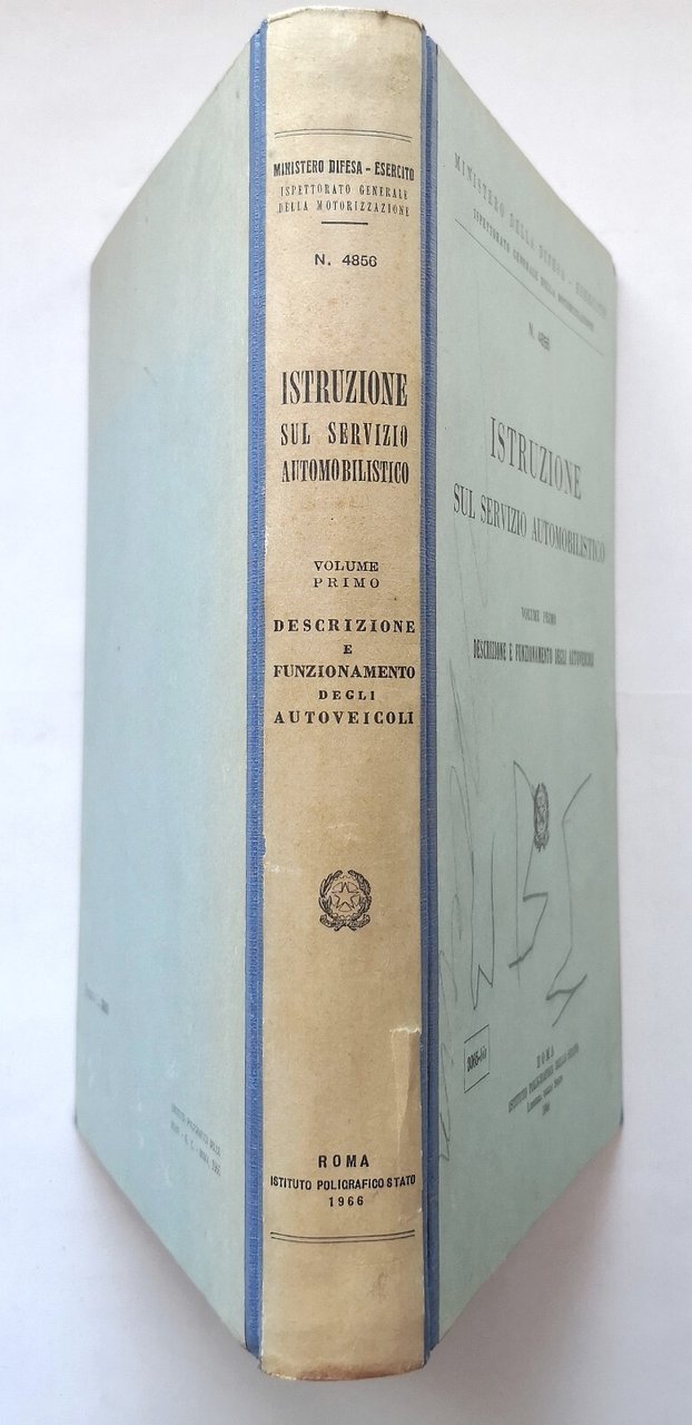 ISTRUZIONE SUL SERVIZIO AUTOMOBILISTICO. Volume I Descrizione e funzionamento degli autoveicoli. Ministero Della Difesa, Esercito. Ispettorato Generale Della Motorizzazione. Numero 4856.