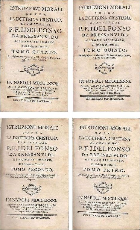 ISTRUZIONI MORALI SOPRA LA DOTTRINA CRISTIANA volumi da 1 a 5 (manca il sesto e ultimo) di P F Idelfonso Da Bressanvido.