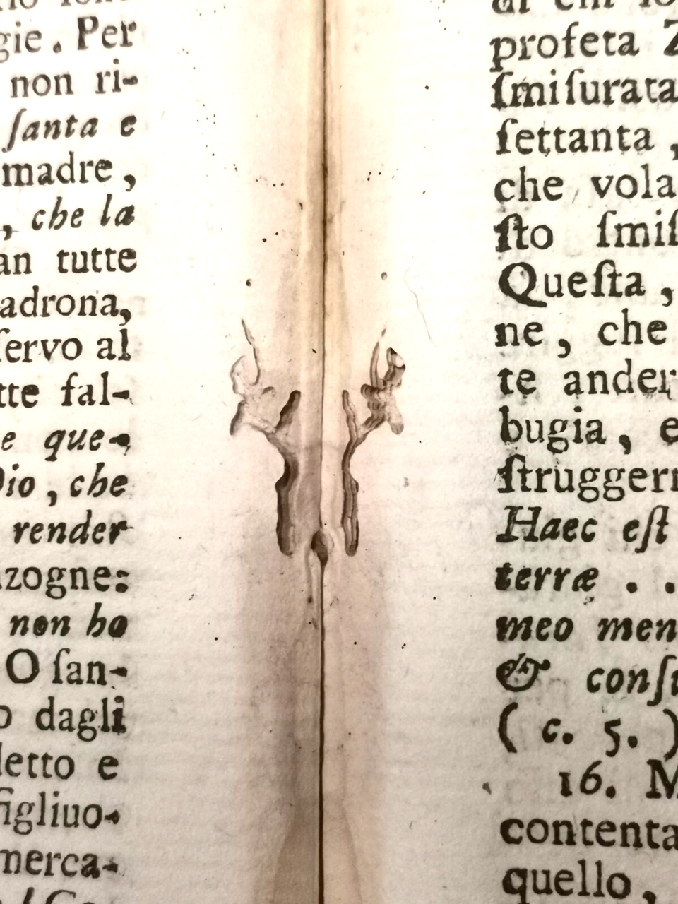 XVI + 547 + VII + 497 + VI + 496 + VII + 503 + VIII + 528 pagine. Frontalini e capilettera istoriati.