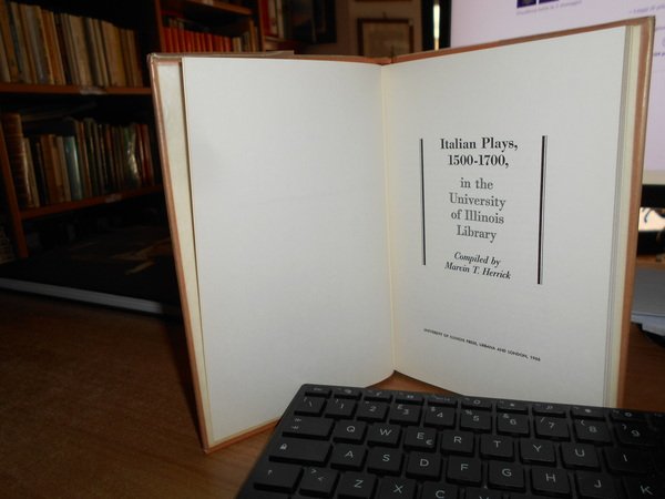 MARVIN T. HERRICK. University of Illinois Press, Urbana and London, 1966. Italian Plays,1500-1700, in the University of Illinois Library. In-8° piccolo, tela edit. con pellicola trasparente orig. (ii), 92 pp. In ottimo stato di conservazione. Uff. E - II - 3