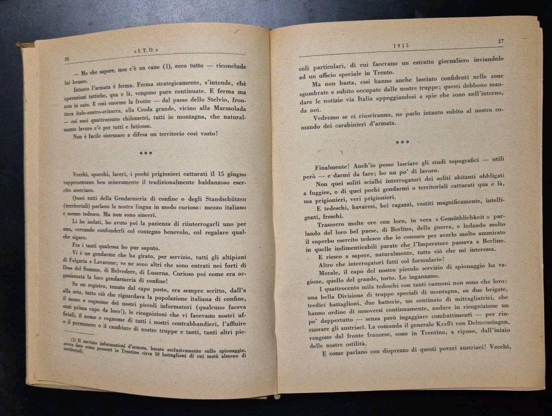 I.T.O. Note Di Un Capo del Servizio Informazioni d'Armata (1915/1918) di Cesare Pettorelli Lalatta.
