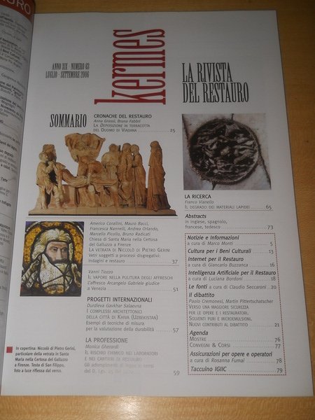 kermes. la rivista del restauro. n° 63, luglio/settembre 2006. La deposizione in terracotta di Viadana. Il sito di Khiva, Uzbekistan. Rischio chimico nei laboratori di restauro. una vetrata del XIV secolo