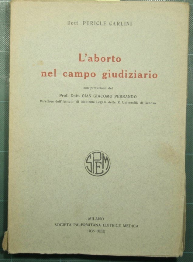 Con prefazione del Prof. Dott. Gian Giacomo Perrando dIrettore dell'Istituto di Medicina Legale della R. Università di Genova - in 8° - pp.244 - Brossura editoriale - Diversi fogli chiusi