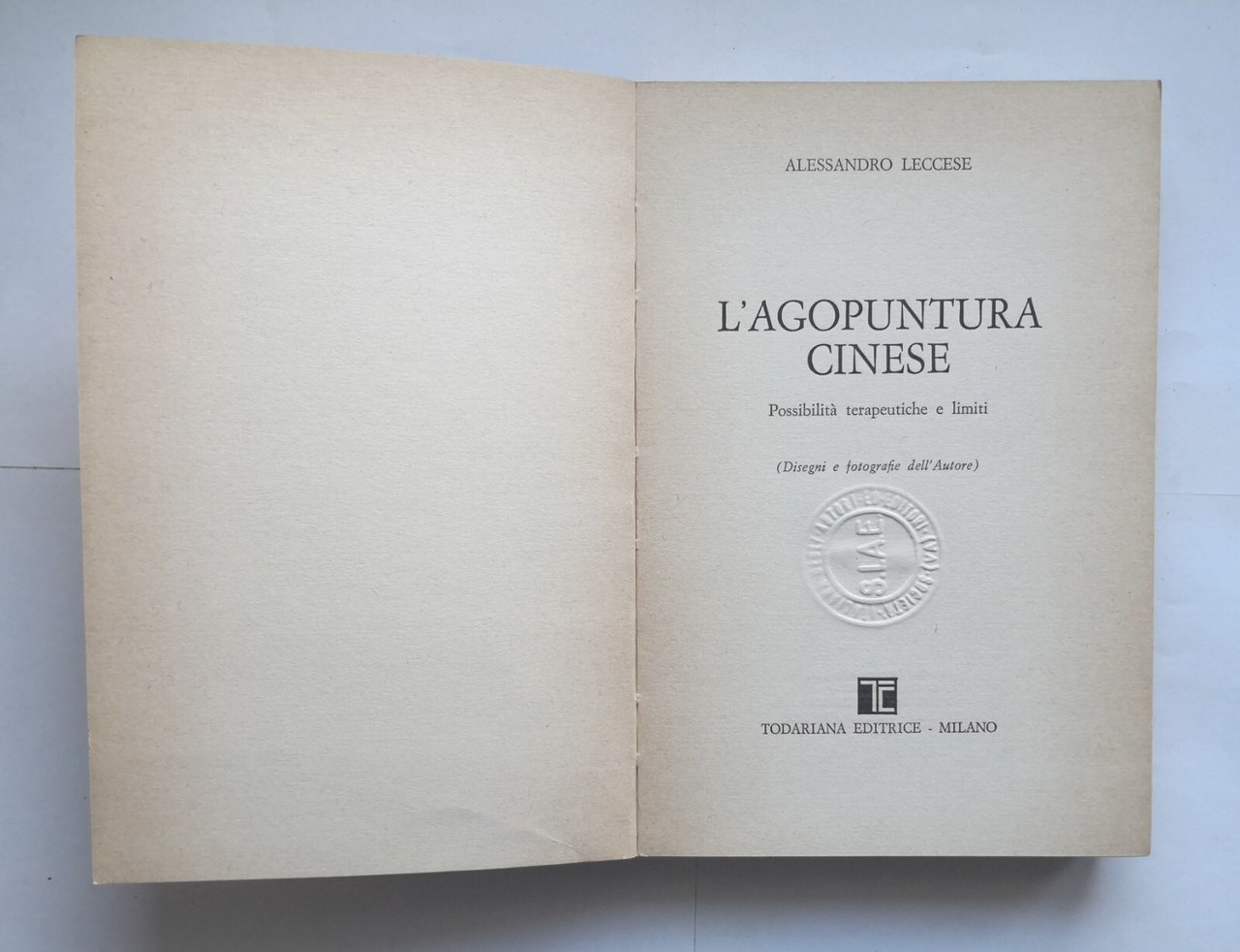 L'AGOPUNTURA CINESE di Alessandro Leccese 1982 Todariana Libro terapia medicina