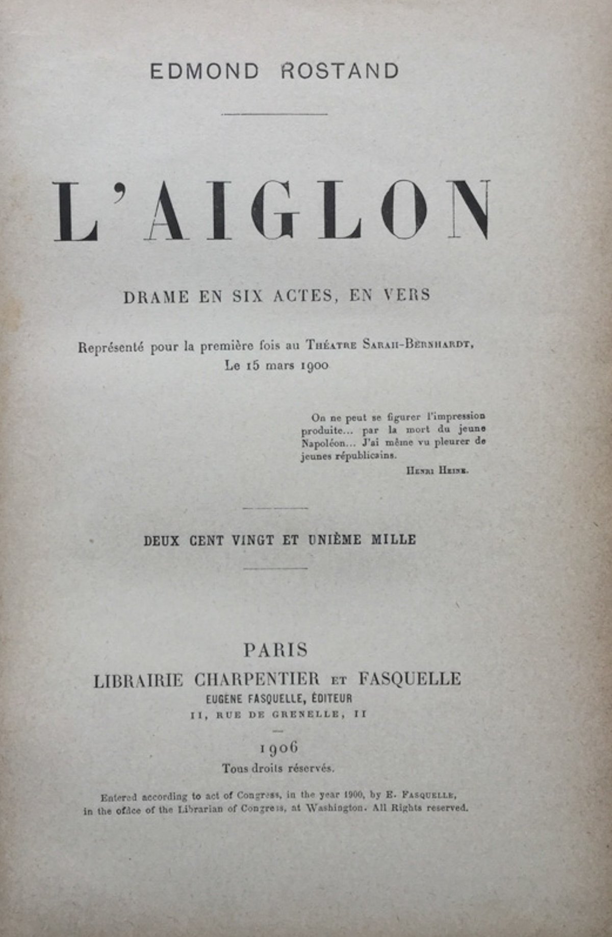 L'Aiglon. Drame en six actes, en vers