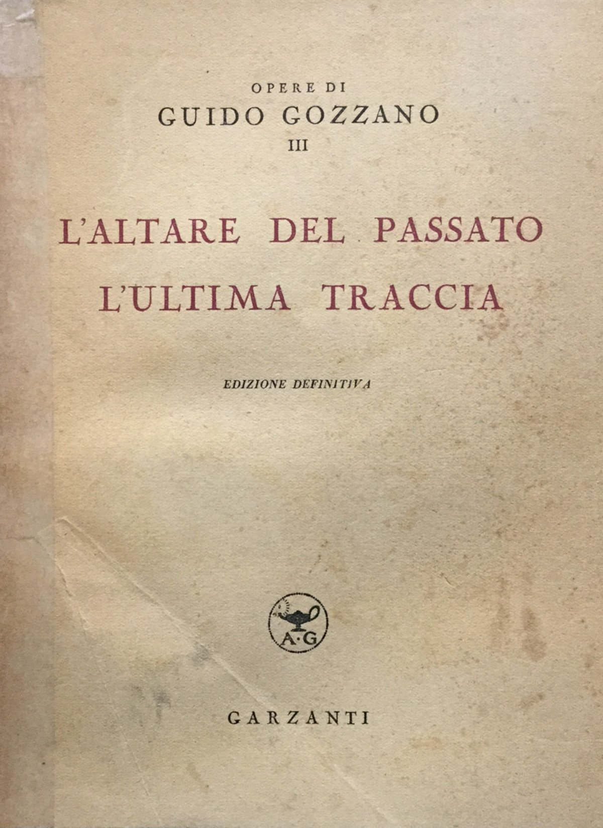 Cm. 20, br. edit., 278 pp. Dorso riparato con nastro adesivo e macchie sulla cop., ma vol. in ordine .Ediz. definitiva. Coll. Opere di G.G. n^ 3. 1944. 16 Mediocre (Poor) Accettabile