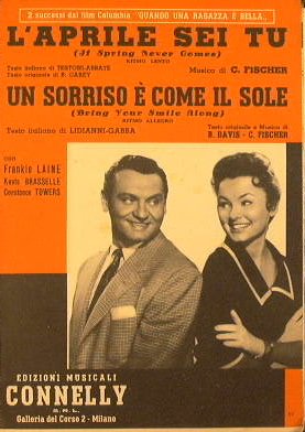 Autori: Testoni, Abbate, Carey B., Fischer C., Lidianni, Gabba e Davis B. - Con Frankie Laine, Keefe Brasselle e Constance Towers - 2 Successi dal film Columbia ' Quando una ragazza è bella ' - in 8° - pp.14 - Brossura editoriale illustrata - Partitura per Saxofono Contralto, Pianoforte, Violino/Fisarmonica/Chitarra, Contrabbasso, Tromba e Saxofono Tenore