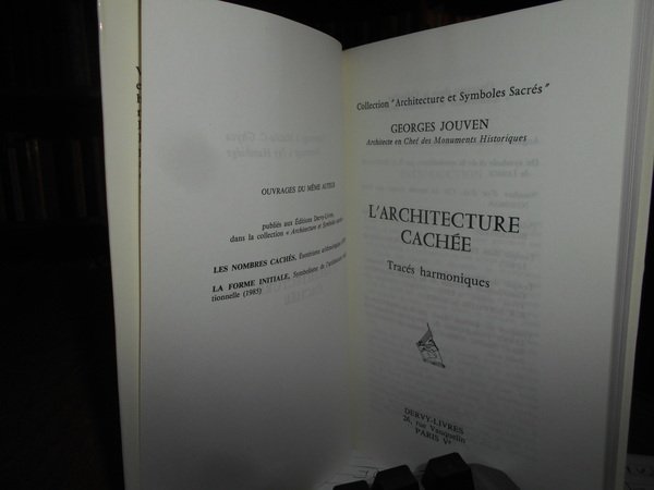 GEORGES JOUVEN. Paris, Dervy-Livres, 1986. L' ARCHITECTURE Cachée tracés harmoniques. In-8°, cartoncino edit. con risvolti. 315, (8) pp. con numerose illustrazioni in bianco e nero nel testo. Come nuovo. Uff. stanzetta mob. a sinistra centro sotto.