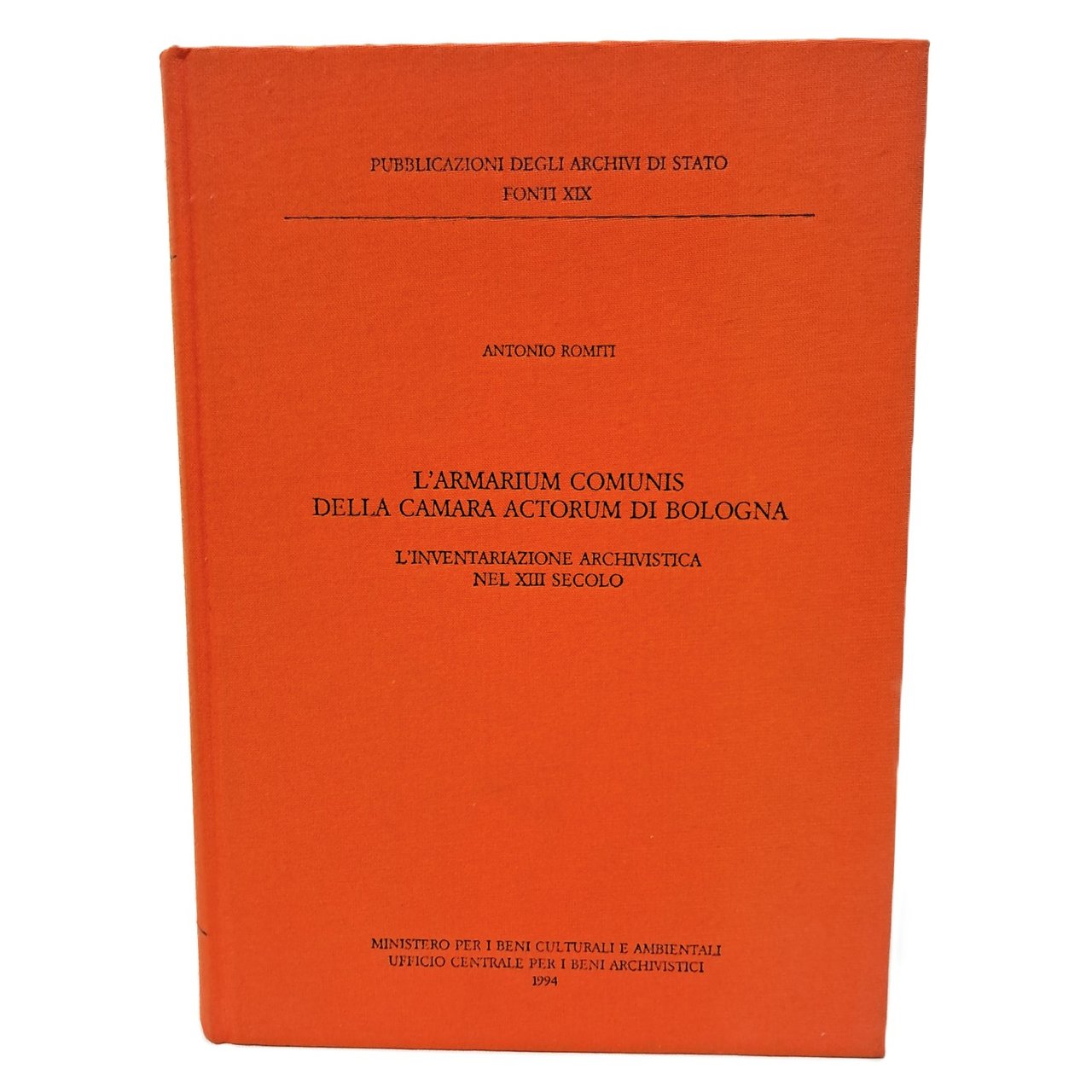 PRIMA EDIZIONE pubblicazioni degli archivi di stato fonti XIX edito per cura dell'università degli studi di Udine: L'inventariazione archivistica nel XIII secolo. Il volume si divide in due parti: nella prima viene presentato un saggio introduttivo di natura storica e archivistica (p. V); nella seconda è presentato l'inventario dell'Armarium comunis della Camera actorum di Bologna (p. 1), seguito dalle tavole esemplificative (p. 355) e l'indice dei nomi (p. 369)Il volume è il frutto dello studio e rielaborazione di uno strumento inventariale redatto tra il 1290 e il 1303 ed è stato edito nella collana Pubblicazioni degli Archivi di Stato, Fonti con il n. XIX. Copertina cartonata. Pp.CCCXLVIII+410. Ottime condizioni.