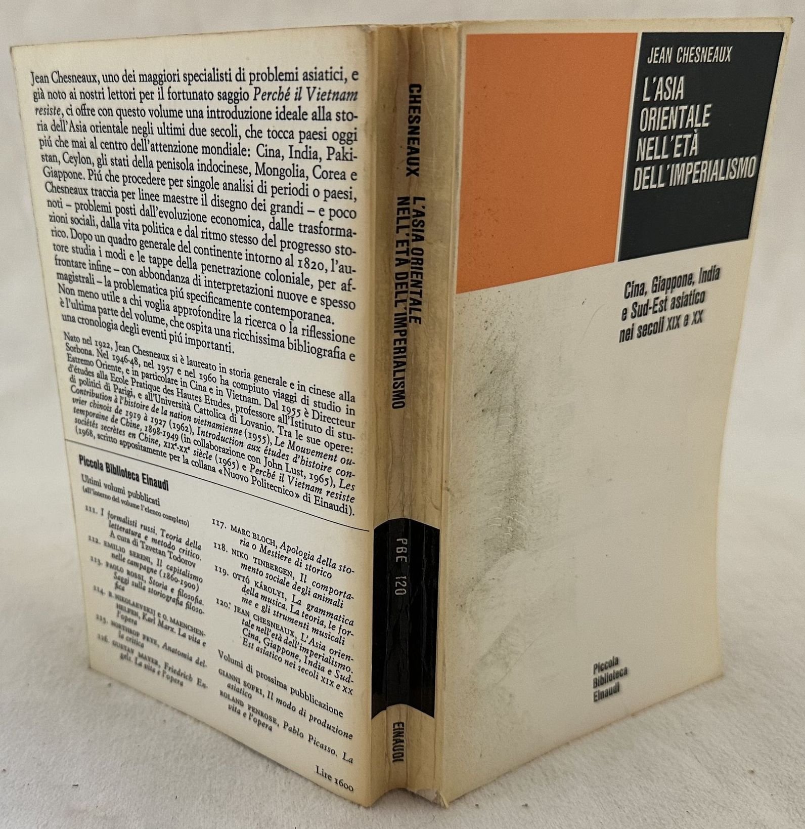 Edizione del 1966 di questa opera sull'Asia orientale nell'età dell'Imperialismo a cura di Jean Chesneaux. All'interno: L'Asia intorno al 1820-30, La penetrazione dell'Occidente nell'Asia Orientale, Il Giappone dall'era del Meiji al 1937, La Cina dalle guerre dell'oppio al 1937, I paesi del Sud Est Asiatico fino al 1941, L'India fino al 1939, L'Asia Orientale e la seconda guerra mondiale, Dalla capitolazione giapponese alla Conferenza di Bandlung, Alcune direttrici di ricerca ecc. In buone condizioni. Copertina editoriale in buone condizioni generali con lievi usure ai margini e dorso. Legatura in buone condizioni. All'interno le pagine si presentano in buone condizioni con rare fioriture. In 16. Dim. 18x10,5 cm. Pp. 361+(6).Edition of 1966 of this work about Oriental Asia during the age of Imperialism by Jean Chesneaux. Inside: L'Asia intorno al 1820-30, La penetrazione dell'Occidente nell'Asia Orientale, Il Giappone dall'era del Meiji al 1937, La Cina dalle guerre dell'oppio al 1937, I paesi del Sud Est Asiatico fino al 1941, L'India fino al 1939, L'Asia Orientale e la seconda guerra mondiale, Dalla capitolazione giapponese alla Conferenza di Bandlung, Alcune direttrici di ricerca ecc. In good conditions. Editorial cover in good conditions lightly worn in the extremities. Binding in good conditions. Inside pages are in good conditions with occasional foxing. In 16. Dim. 18x10,5 cm. Pp. 361+(6).