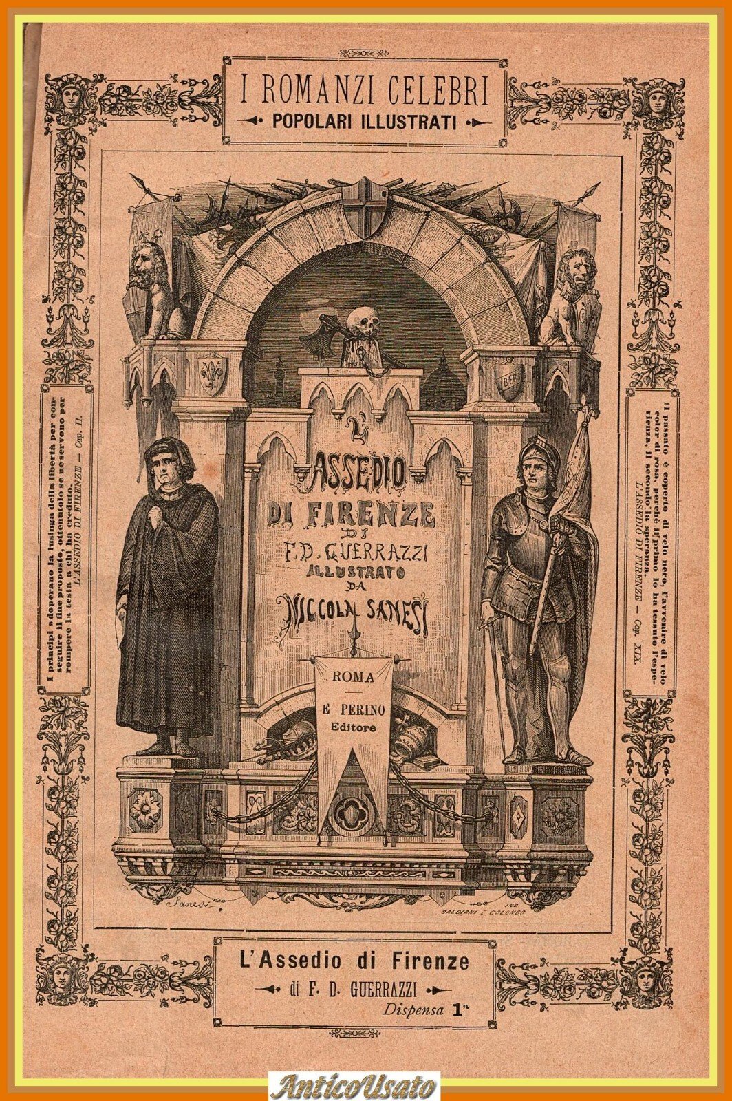 L'ASSEDIO DI FIRENZE di F. D. Guerrazzi. Perino Editore, 1892. 512 pagine, numerose illustrazioni in bianco e nero nel testo. Copertina non editoriale in mezza tela. Stato di conservazione: buono (pagine ingiallite, dorso scolorito) Libro antico narrativa letteratura italiana