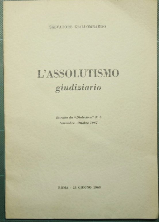 Estratto da Dialectica n. 5 Settembre-Ottobre 1967 - in 8° - pp.10 - Brossura editoriale