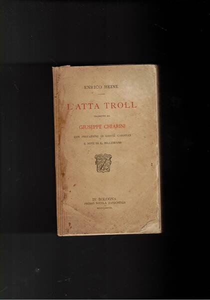 L'Atta Troll, tradotto da Giuseppe Chiarini, con prefazione di Giosuè Carducci e note di K. Hillebrand.