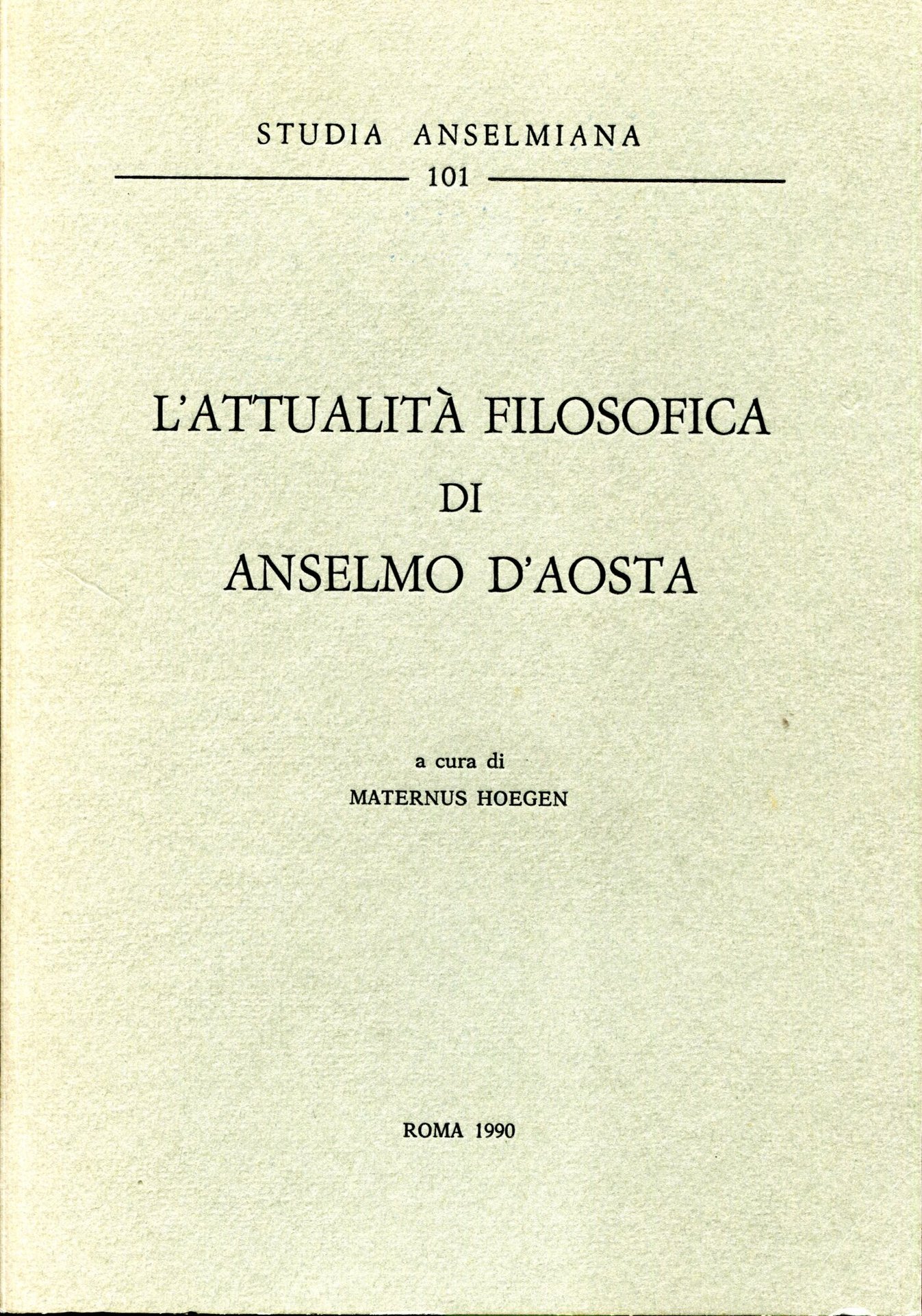 L'attualita Filosofica di Anselmo D'Aosta. Studia Anselmiana 101.