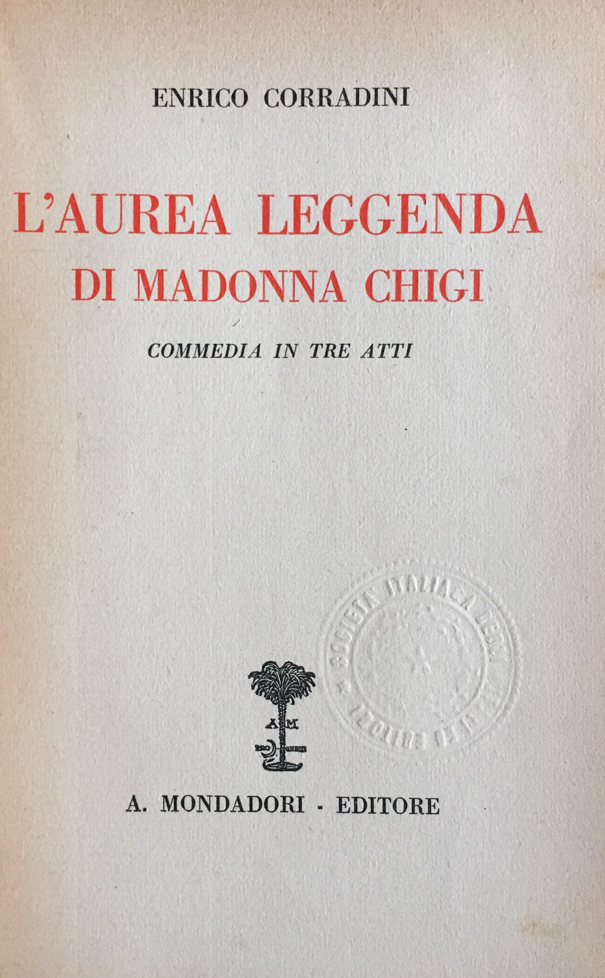 Commedia in tre atti. Legatura editoriale coeva. 852 � Ba In Ottavi (15-23cm ) Ottimo (Fine) Ottimo