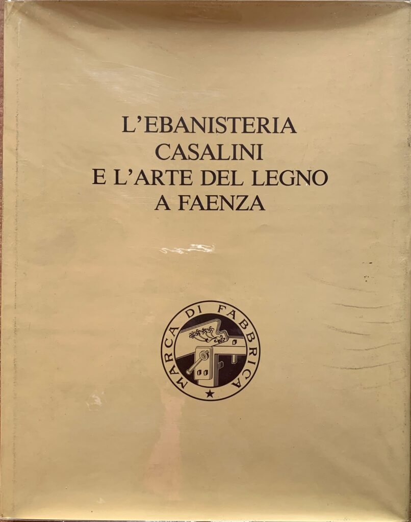 Ennio Golfieri. L'Ebanisteria Casalini e l'arte del legno a Faenza. Monte di Credito su Pegno e Cassa di Risparmio - Litografie Artistiche Faentine, 1987. Tela con sovracoperta illustrata. Pagine 234. Dimensioni cm. 24,5 x 30,5. 1^ edizione. Con numerose illustrazioni a colori e in b/n. Edizione fuori commercio di 1500 esemplari numerati (Nostra copia n° 1001). Esemplare in buonissime condizioni.